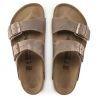 I sandali Arizona Oiled Leather sono il modello classico per eccellenza del marchio Birkenstock. Sono dotati di due cinturini con fibbie in metallo regolabili. La tomaia è in pelle nabuk oliata, un materiale che sottolinea l'aspetto artigianale e naturale di questo sandalo. Questa pelle è molto morbida, offre un comfort ideale per camminare.